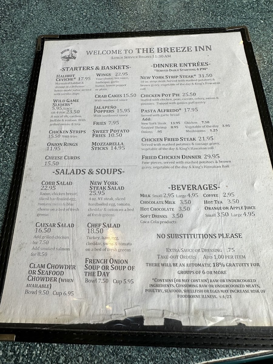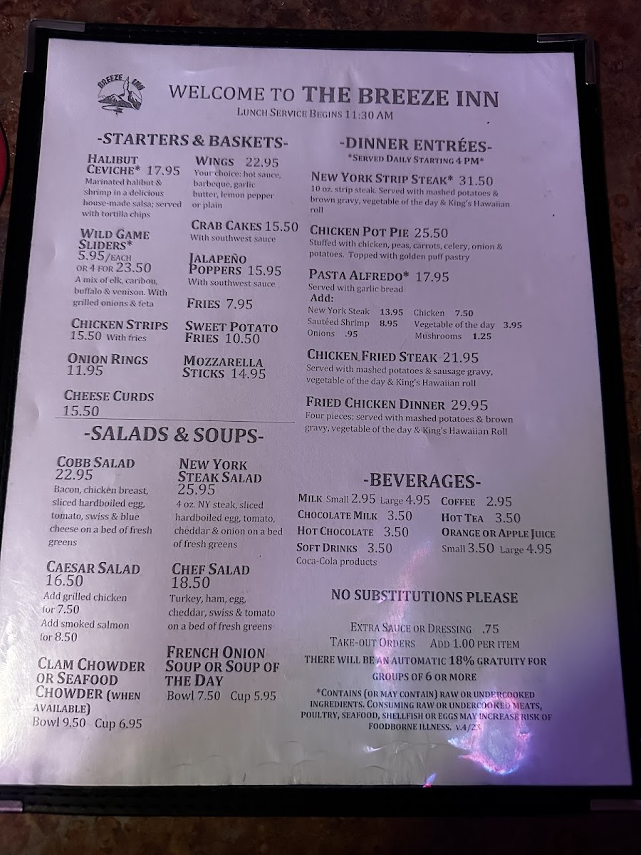 Welcome to Breeze Inn Restaurant & Lounge, a hidden gem located at 1313 4th Ave, Seward, AK. This inviting spot offers a menu that beautifully balances local flavors and classic comfort food.